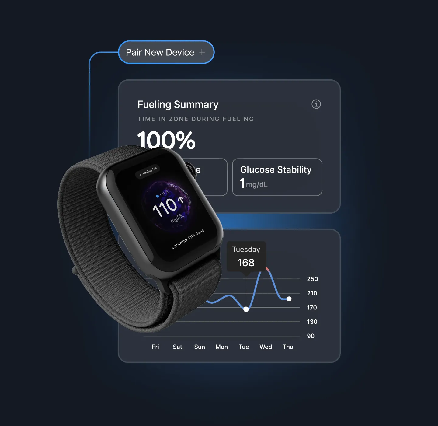 Get glucose visibility on Apple Watch, Garmin, and more coming soon.