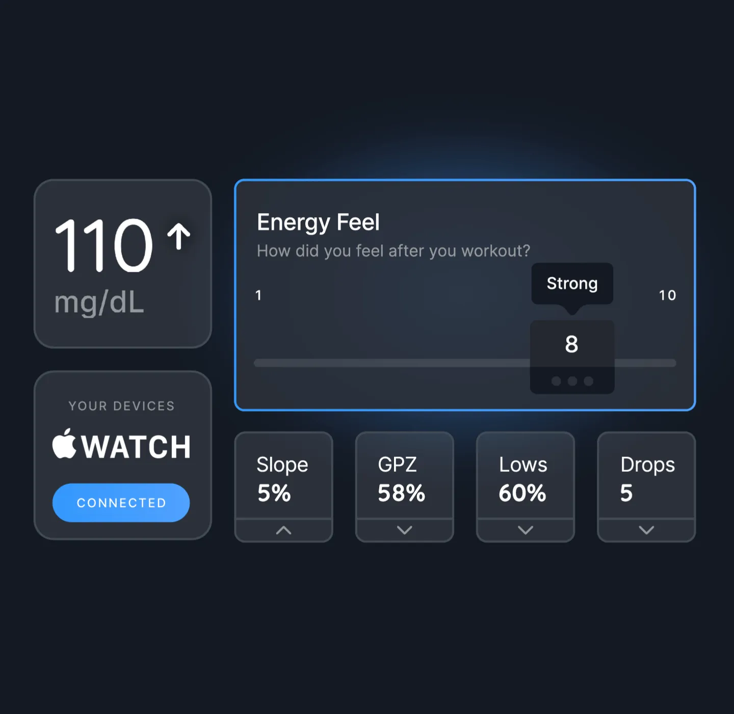 Turn your continuous glucose trace into actionable health & fitness insights for improved stability, performance, and lifestyle. Launching soon in the United States.
